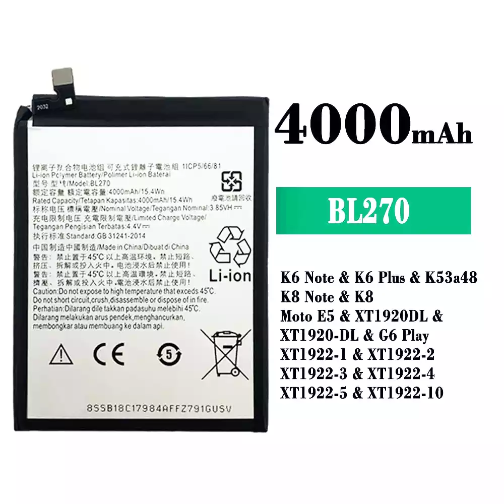 Baterie BL270 pentru Lenovo K6 Note / K6 Plus / K53a48 / K8 Note / K8 / Moto E5 / XT1920DL / XT1920-DL / G6 Play / XT1922-1 / XT1922-2 / XT1922-3 / XT1922-4 / XT1922-5 / XT1922-10