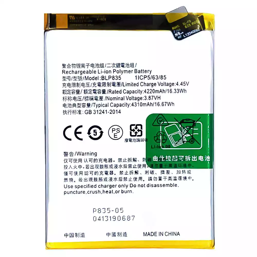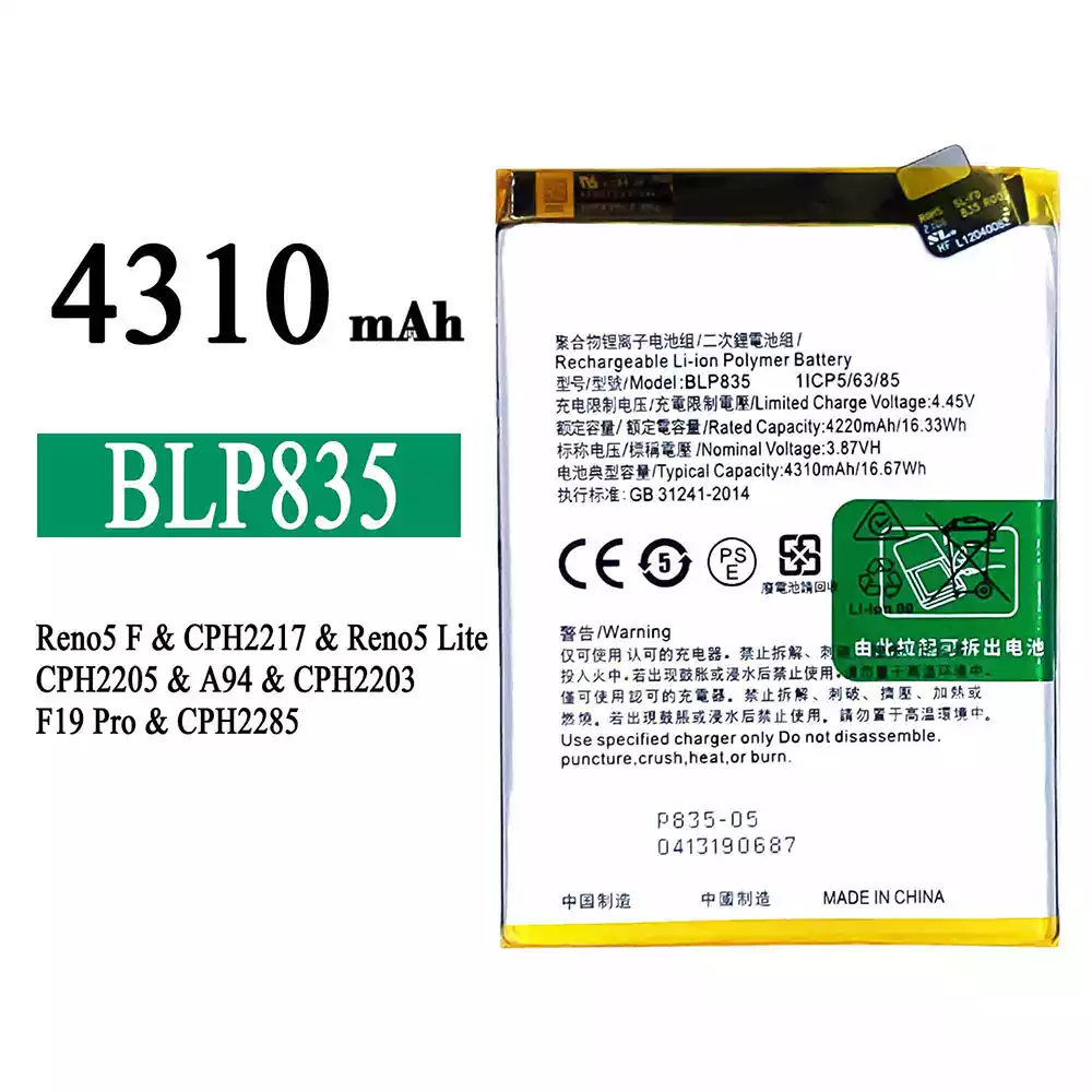 Baterie BLP835 pentru OPPO Reno5 F /Reno5 Lite /F19 Pro /A94 4G /CPH2217 /CPH2205 /CPH2203 /CPH2285