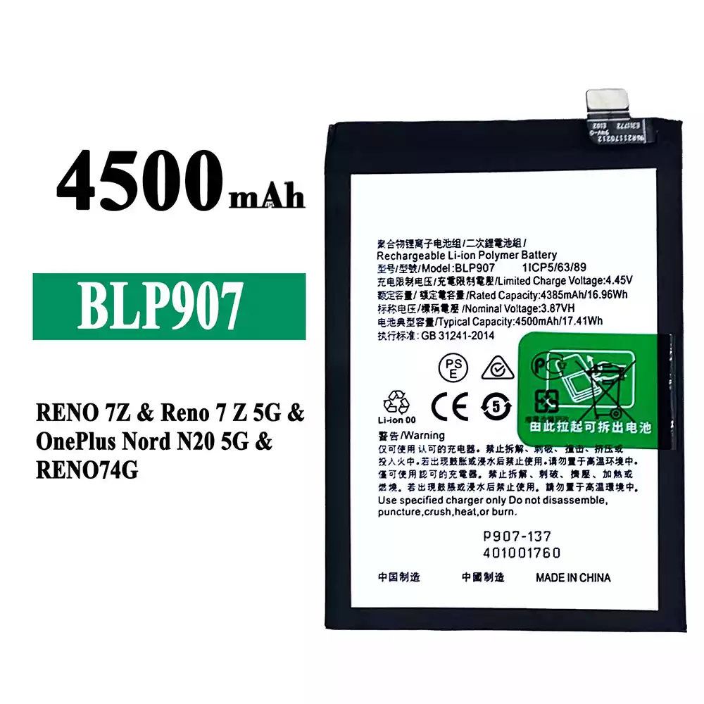 Baterie BLP907 pentru OPPO RENO 7Z / Reno 7Z 5G / OnePlus Nord N20 5G / RENO 74G / RENO 8 4G